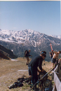Odpočinek u dolní stanice nákladní lanovky na Stüdlhütte