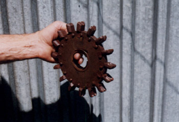 oběžné kolo Děvínské peltónovy turbiny (v ruce autora)